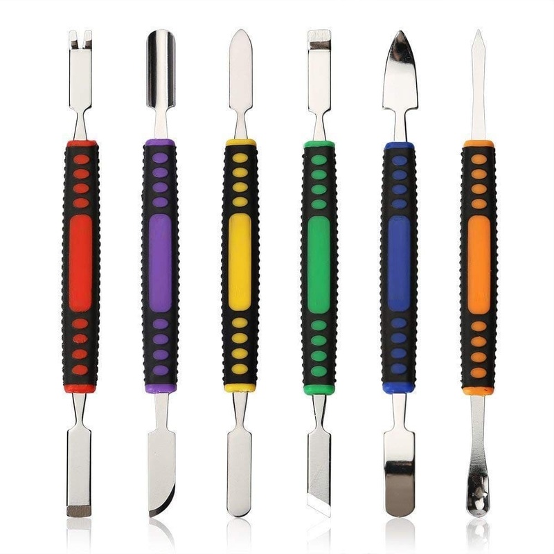 Premium 6 PCs Dual End Metal Spudger Set These metal spudger tools are multifunctional which can be used to open your laptop, iPod, iPad, iPhone, Mobile, and other small electronics. They’re chrome plated with skid proof plastic handle and dual tipped design and various blades for every repair situation. With the pry tools, you’ll be able to easily disassemble your phones and any other devices without any damage.